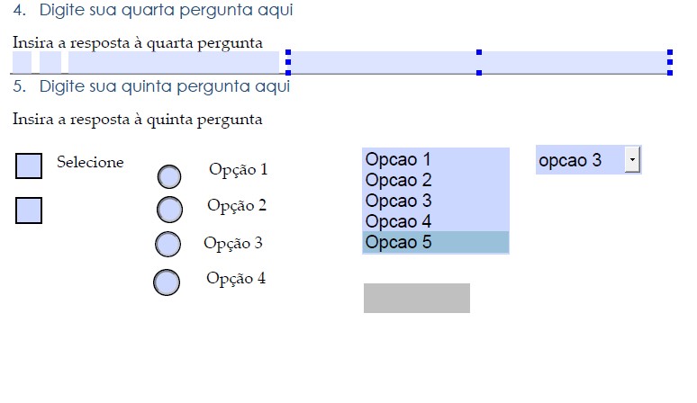 10. Podemos editar os campos de texto, inserir novos campos de texto, adicionar texto, e criar botões de seleções para perguntas de múltipla escolha: