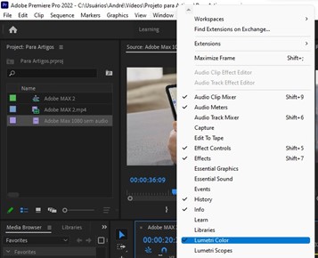 No Adobe Premiere temos uma ferramenta com muitas possibilidades para realizar esses ajustes, a Lumetri Color, você pode localizar indo em: Window (Janela) ? Lumetri Color.